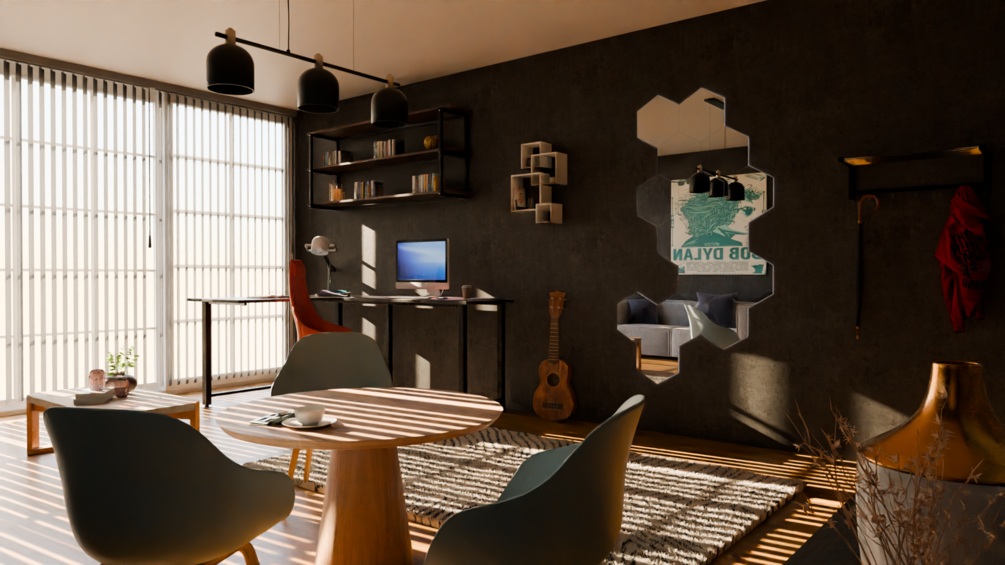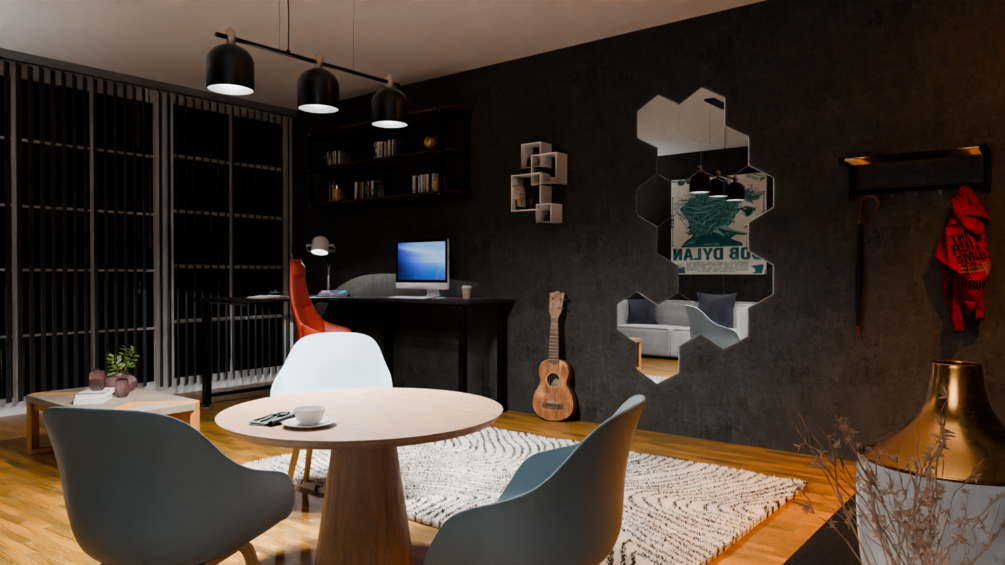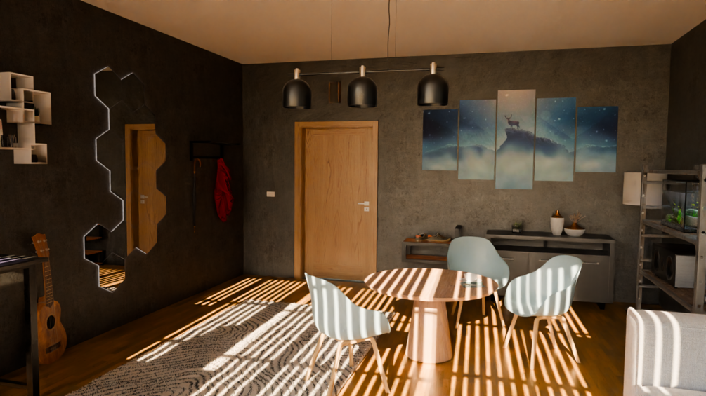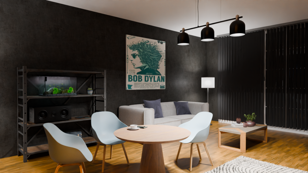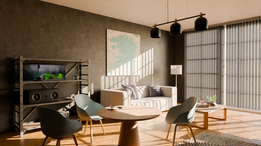 This file contains a 3D model of a living room, created in Blender. The model is designed for use in graphic design, animation, and gaming projects.